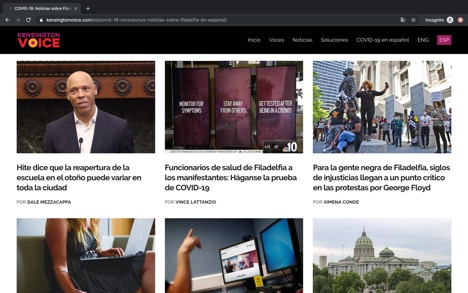 Bauer-Reese asked the other news organizations for COVID-related articles for Kensington Voice to translate into Spanish. It worked: Kensington Voice got many articles that it could translate and run on its site, share with Resolve partners to publish, and circulate through neighborhood networks.