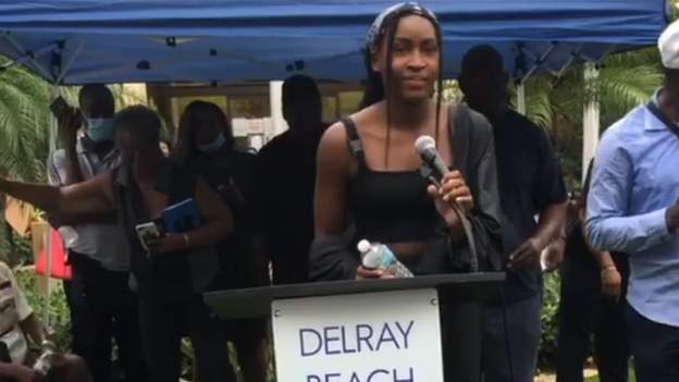 At a peaceful protest in Florida last month, Gauff urged people to vote and speak out against racism.