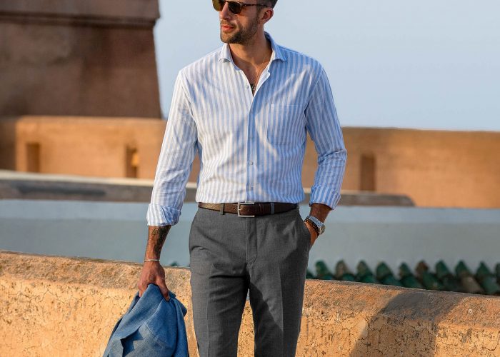 Dapper Classics, a sponsor on this site, is one of the few places where you can get quality trousers at a relatively affordable price. Most trousers around $100 aren’t very well-made, and high-end pants commonly reach upwards of $400. Dapper Classics sit somewhere in the middle of that spectrum $200-ish for made-in-NYC pants constructed from the same fabrics used by bespoke tailors. Their trousers come with a rear-split waistband, fully curtained lining, and unfinished hem so you get them finished however you’d like. They’re also a solid mid-rise with a slim leg line.