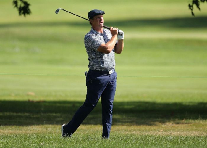 Bryson running a little hot. Caught up with him on 7 where he took a Sergio slash at the sand after splashing out of a greenside bunker, muttered an expletive after missing the par save and spent 60 seconds in a…testy discussion with a cameraman on his way to 8 tee. pic.twitter.com/ENjQt1U689