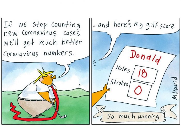 Third, be sure to bury the facts by blaming the usual suspects. Take your pick: Democrat governors, Barack Obama, “Sleepy” Joe Biden or the “Fake News” media. Over the past five months, Trump has also blamed the spread of the virus on China, the World Health Organisation, the “radical” Left, Black Lives Matter protestors and, of late, “too much testing”.