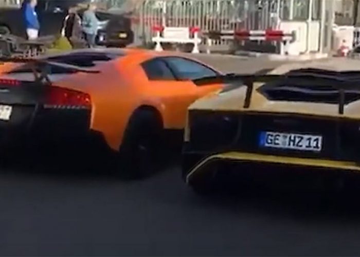 Wince As A Lamborghini Aventador SV And A Murcielago SV Slowly Run Into Each Other