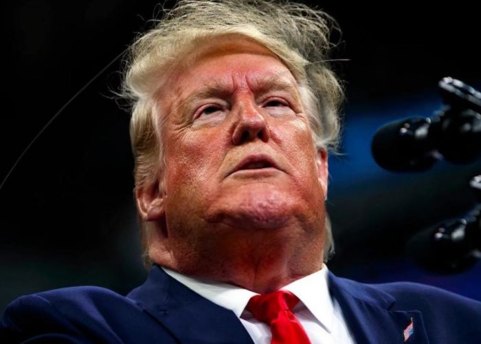 The original photo was taken by Associated Press photographer Evan Vucci in Minneapolis on October 10, 2019, at one of Trumps neo-fascist rallies.