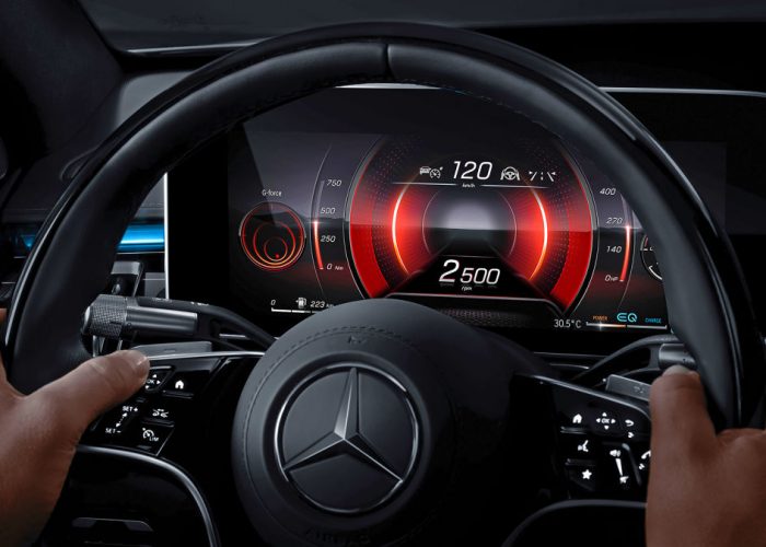 Its part of a major overhaul of the Mercedes-Benz User Experience, or MBUX, which includes a long list of features that drivers and passengers will actually benefit from in a modern vehicle. Features include biometric voice and fingerprint recognition so occupants can easily bring up pre-configured settings and profiles or make authorized online purchases; driver monitoring to ensure they never get drowsy behind the wheel; low-power OLED displays; content like videos that can be easily shared between screens available at every seat; and even smartphone integration so you can preheat the oven or crank the AC before you pull into the driveway. Also…. a 3D screen for the driver?