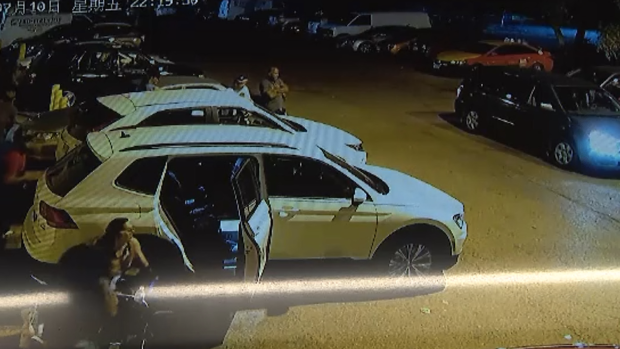In a video obtained by CTV News Toronto from a nearby business, it shows a dark-coloured vehicle driving into the parking lot where dozens of people, including a child, have gathered.