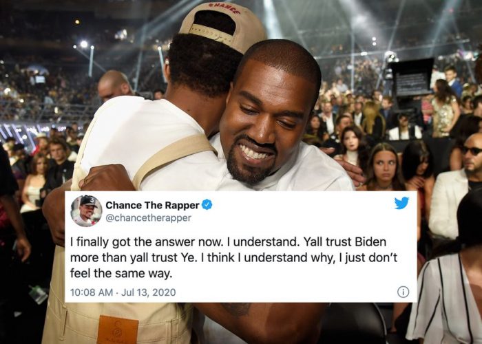 Taking all those stances into account, folks weren’t pleased with Chance coming out as a staunch supporter fo his friend’s presidential ambitions. He tweeted frequently over the course of a few hours about West’s 2020 bid and also posing hypothetical questions about politics.
