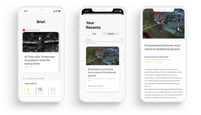 Brief (which was founded as Broadsheet), is staffed by similarly-minded, mission-driven team, including engineers from Apple and Google, and a small editorial team who had worked on curation and fact-checking at Snapchat and Wired.