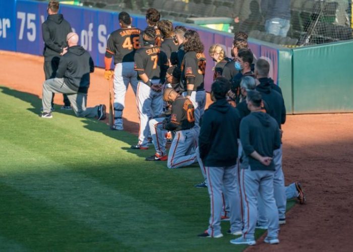Members of Major League Baseball’s San Francisco Giants took a knee during the anthem ahead of an exhibition game on Monday, leading U.S. President Donald Trump on Tuesday to renew his criticism of the protests.