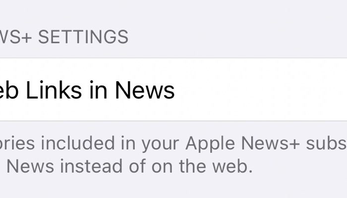 Enabled by default in the Settings app, the option to open web links in Apple News is an Apple News+ “feature,” so an Apple News+ subscription is required to have the Apple News app open when a web link is tapped.The option to open links in Apple News instead of on the web was highlighted by Tony Haile, who points out that Apple is intercepting traffic from websites and directing it to the Apple News app instead, cannibalizing a publisher’s audience and drawing more users to Apple News+. Haile suggests that Apple can accelerate News+ growth by intercepting publisher traffic, with the ultimate aim of attracting more publishers to the platform with a growing subscription base.