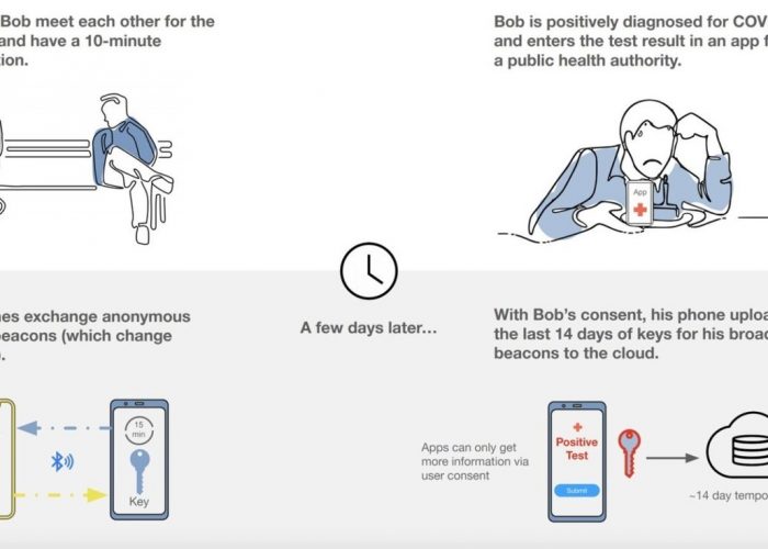 With security at the fore, the solution does not store data on central servers run by Apple or Google, but instead silos anonymized Bluetooth beacons on user devices until participants elect to share the information with an outside party. If and when a user is diagnosed with COVID-19, they can opt to upload a 14-day list of recent anonymized contacts to a distribution server, which matches beacon IDs and sends out notifications alerting those individuals that they came in close contact with a carrier of the virus. Doctors can also peruse the data, if such access is granted.