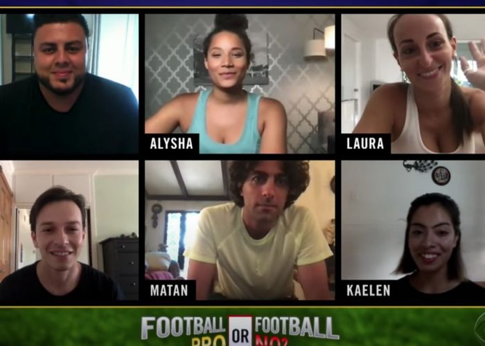 First out of the gates is “Football Pro or Football No?”, which sees Jason Sudeikis and James Corden attempting to identify which three out of six people on a video call are professional football players (Corden sticks to his roots here and refuses to call it soccer).