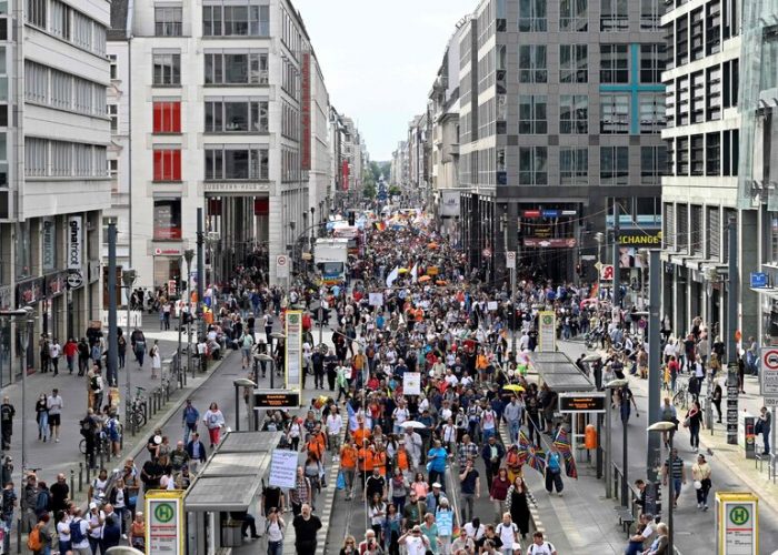Berlin security authorities sought to ban the protest over fears that participants would violate laws intended to prevent the spread of the virus. But supporters of the demonstration assailed the ban as an attempt to stifle citizens freedom and a violation of their constitutional rights.