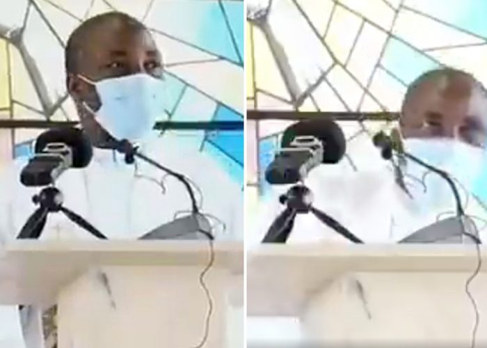 The clip was shot as the man, identified as Rev. Fr Jude, was delivering a sermon in the western city of Douala on August 30.