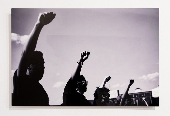 “VOICES foregrounds the narratives that have encompassed Black beauty in America in the current era.. [illustrating] the strength and luster we find in the Black body, the tenacity that our ancestors displayed when faced with the bounteous trauma of the past four previous centuries,” says Musa. “The aim of this exhibition is to explore that same Black body voicing its experiences in the modern day era of society. The message? We are strong.” Highlights of the show include Mark Clennon’s photograph capturing a show of resistance and solidarity in front of Trump Tower in Manhattan, Latoya Hobb’s intimate portraits of Black women and Esteban Whiteside’s painting of a flower pot that reads “Cops Plant Drugs.”