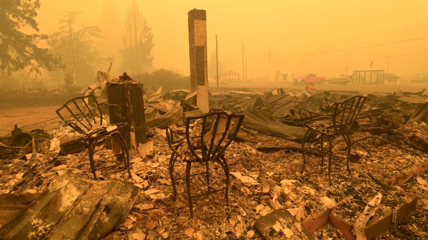 In southern Oregon near the California state line, much of the small town of Phoenix was wiped out. A mobile home park, houses and businesses were burned, leaving twisted remains on charred ground.