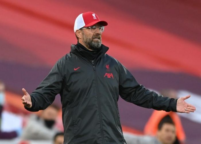 Soccer Football – Premier League – Liverpool v Leeds United – Anfield, Liverpool, Britain – September 12, 2020 Liverpool manager Juergen Klopp reacts. Pool via REUTERS/Shaun Botterill