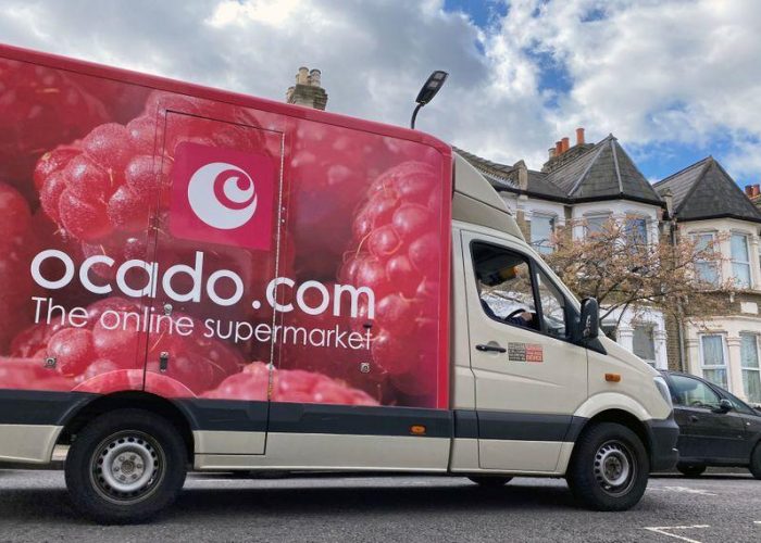 An Ocado delivery van is driven along a road in Hackney, London, Britain, as the spread of the coronavirus disease (COVID-19) continues, April 2, 2020.