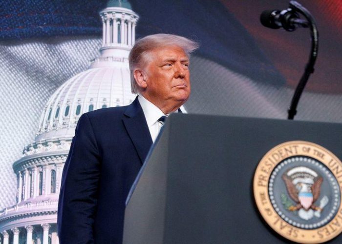 FILE PHOTO: U.S. President Donald Trump arrives to speak in Arlington, Virginia, U.S., August 21, 2020. REUTERS/Tom Brenner/File Photo