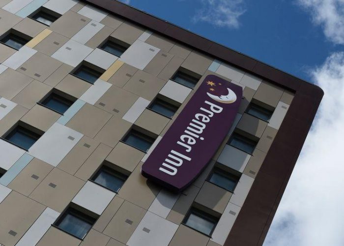 Signage for Premier Inn is seen on the outside of one of their hotels in London, Britain, March 30, 2016.