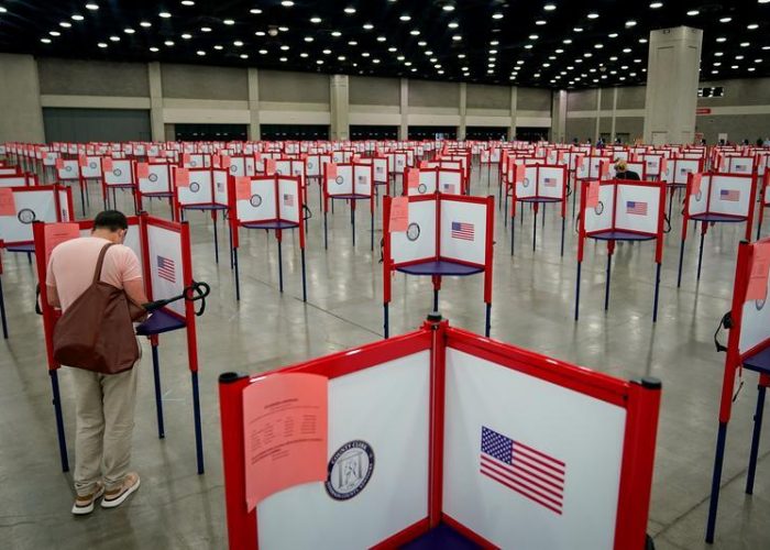 FILE PHOTO: A voter completes his ballot on the day of the primary election in Louisville, Kentucky, U.S. June 23, 2020. REUTERS/Bryan Woolston/File Photo/File Photo