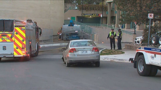 While operating the stolen car, police say, the suspect crashed into a parked construction vehicle in the area of Subway Crescent and Dundas Street.