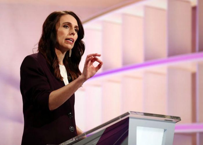New Zealand Prime Minister Jacinda Ardern participates in a televised debate with National leader Judith Collins at TVNZ in Auckland, New Zealand, September 22, 2020.