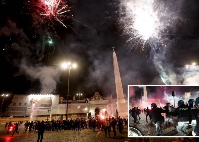 Rome riots over Covid curfew; Cops pelted with fireworks…