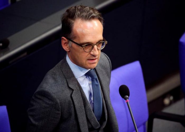 FILE PHOTO: German Foreign Minister Heiko Maas speaks at a session of the German lower house of parliament Bundestag in Berlin, Germany, October 7, 2020. REUTERS/Hannibal Hanschke/File Photo