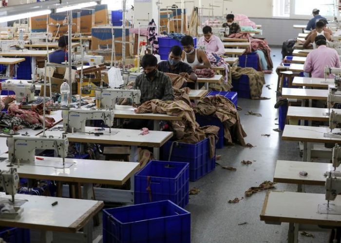 Workers stitch garments at a factory of an apparel shop in Jaipur, India, October 20, 2020. Picture taken October 20, 2020. REUTERS/Anushree Fadnavis