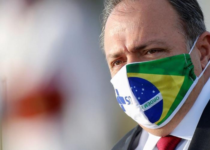 FILE PHOTO: Brazil’s interim Health Minister Eduardo Pazuello wears a protective face mask as he looks on before a national flag hoisting ceremony in front the Alvorada Palace, amid the coronavirus disease (COVID-19) outbreak, in Brasilia, Brazil June 9, 2020. REUTERS/Adriano Machado