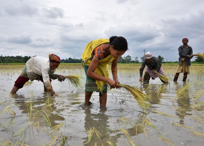 Women plant rice saplings at a paddy field in a village in Nagaon district, in the northeastern state of Assam, July 3, 2018. REUTERS/Anuwar Hazarika/File Photo