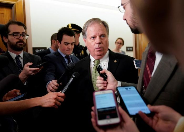 FILE PHOTO: U.S. Senator Doug Jones (D-AL) arrives for a briefing on the corona virus outbreak in China, on Capitol Hill in Washington, U.S., January 24, 2020. REUTERS/Joshua Roberts//File Photo
