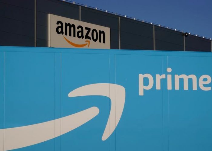 FILE PHOTO: The logo of Amazon Prime Delivery is seen on the trailer of a truck outside the company logistics center in Lauwin-Planque, northern France, December 30, 2019. Picture taken December 30, 2019. REUTERS/Pascal Rossignol