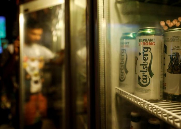 FILE PHOTO: Carlsberg beer cans are seen at a pub in Mumbai, India, October 20, 2018. REUTERS/Danish Siddiqui