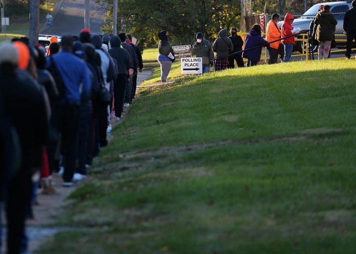 Voters wait on line to cast their ballots on Election Day on November 3, 2020 at Jennings Senior High School in St Louis, Missouri.Michael B. Thomas/Getty Images