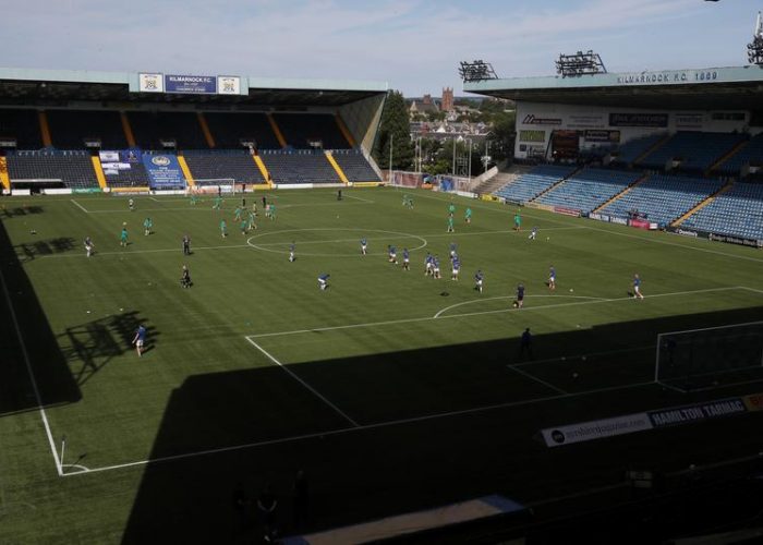 FILE PHOTO: Football – Scottish Premiership – Kilmarnock v Celtic – Rugby Park, Kilmarnock, Britain – August 9, 2020 General view inside the stadium before the match, following the resumption of play behind closed doors after the outbreak of the coronavirus disease (COVID-19) Ian MacNicol/Pool via REUTERS