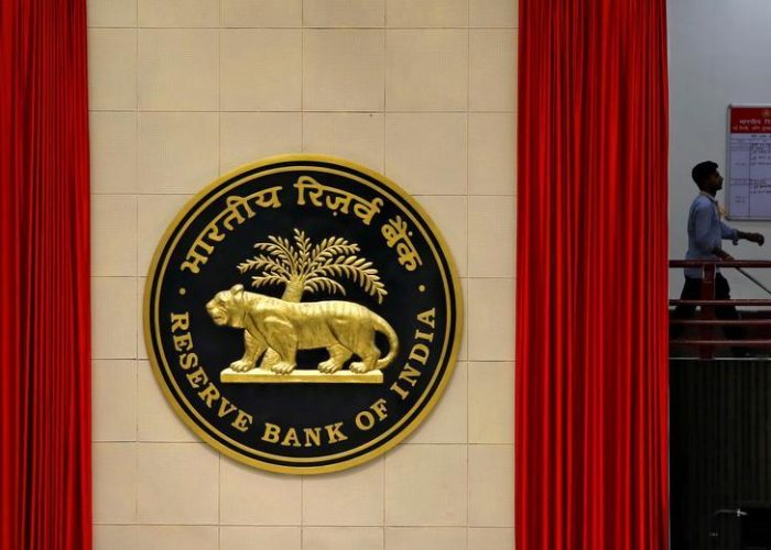 FILE PHOTO: A worker walks past the logo of Reserve Bank of India (RBI) inside its office in New Delhi, India July 8, 2019. REUTERS/Anushree Fadnavis/File Photo