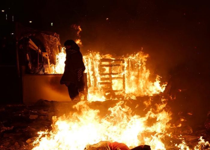 Police arrived before dawn at the camp, a mix of tents and improvised shelters made out of plastic sheeting and cardboard boxes under a flyover on the edge of the capital.