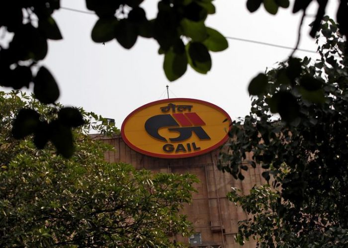The logo of India’s state-owned natural gas utility GAIL (India) Ltd is pictured on its corporate office building in New Delhi, April 26, 2018. REUTERS/Adnan Abidi/Files