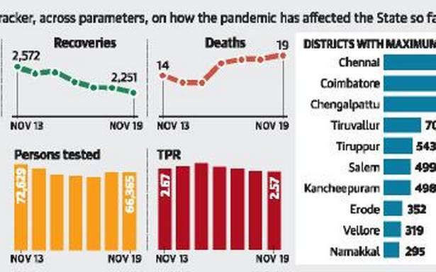 Coimbatore, Chengalpattu and Tiruvallur recorded over 100 cases in a day. In Coimbatore, 149 more persons were infected, while 119 cases were added in Chengalpattu. The district also recorded three deaths.