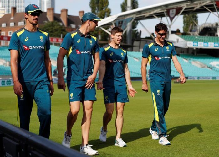 Cricket – Australia Nets – Kia Oval, London, Britain – September 10, 2019 Australia’s Mitchell Starc, Josh Hazlewood, Tim Paine and Pat Cummins during nets Action Images via Reuters/Paul Childs/Files