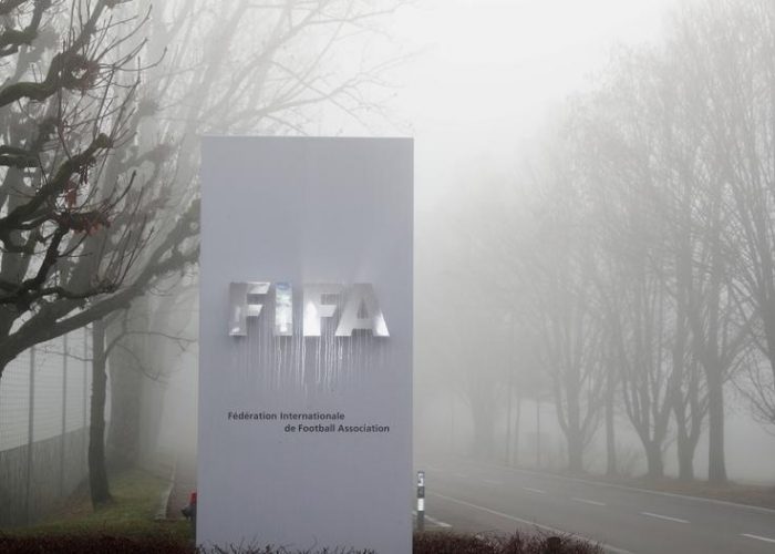 FILE PHOTO: FIFA’s logo is seen in front of its headquarters during a foggy autumn day in Zurich, Switzerland November 18, 2020. REUTERS/Arnd Wiegmann/File Photo