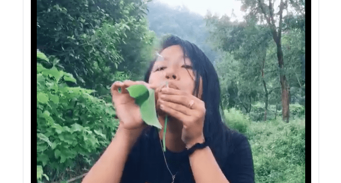 A video shared to the nature appreciation subreddit r/NatureIsFuckingLit in November 2020 showed a woman breaking the stem of a plant apart and blowing what appear to be bubbles from its sap.