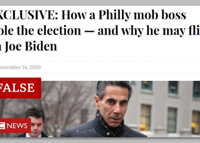 The story claimed that reputed Philadelphia mob boss Joe Merlino – aka “Skinny Joey” – was paid $3m (£2.25m) to “steal the election” in Pennsylvania by dumping boxes of counterfeit ballots marked for Joe Biden at a counting centre. It cites “associates” of Mr Merlino and anonymous sources.