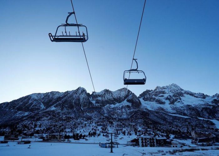 A closed chairlift is seen at the ski resort of Passo Tonale in the Dolomites which has become a virtual ghost town after the government decision to close everything down in fear of the rising numbers of coronavirus (COVID-19) infections, in Passo del Tonale, Italy, November 26, 2020.