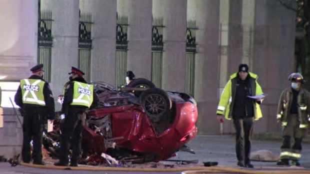 Police said they were called to Princes Gate, west of Strachan Avenue and Lakeshore Boulevard West, at 4:40 a.m. for a report of a collision where the driver was trapped inside his vehicle.