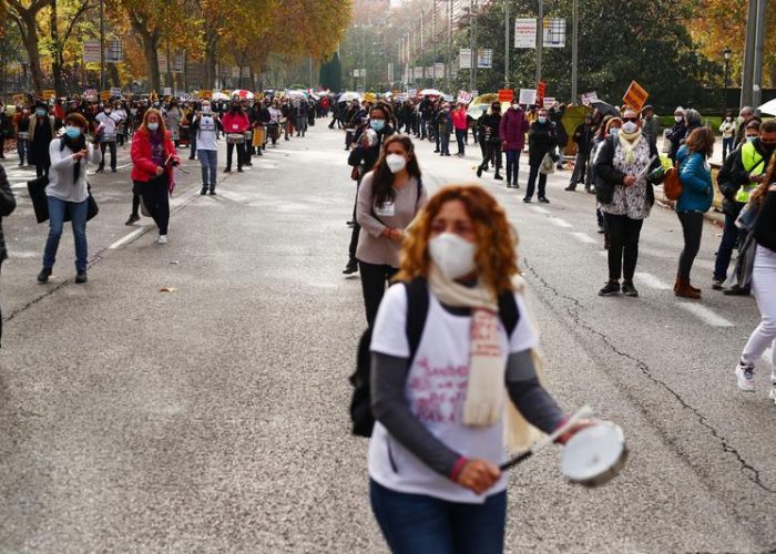Singing less flags and more nurses, about 4,000 protesters marched through the Spanish capital, the region hit hardest by the coronavirus.