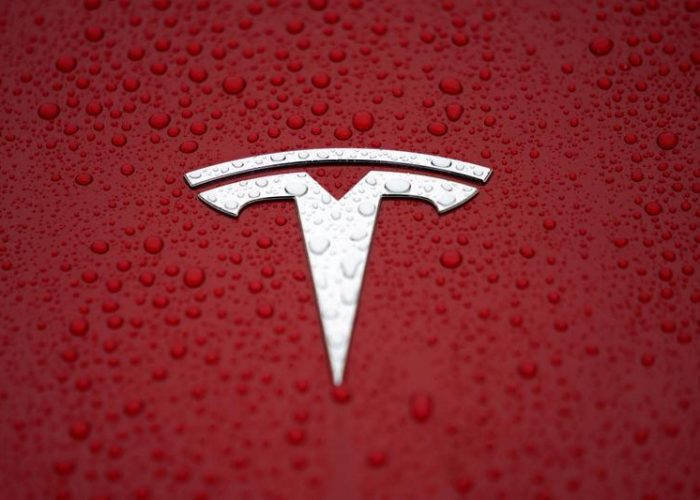 FILE PHOTO: A Tesla logo is seen at a groundbreaking ceremony of Tesla Shanghai Gigafactory in Shanghai, China January 7, 2019. REUTERS/Aly Song/File Photo