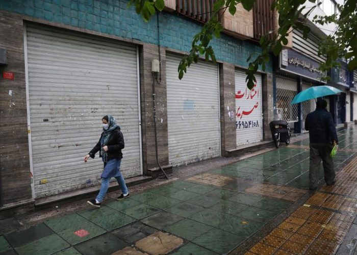 FILE PHOTO: An Iranian woman wearing a protective face mask, walks next to closed shops, as government imposed a full lockdown, amid the spread of the coronavirus disease (COVID-19), in Tehran, Iran November 21, 2020. Majid Asgaripour/WANA (West Asia News Agency) via REUTERS/File Photo