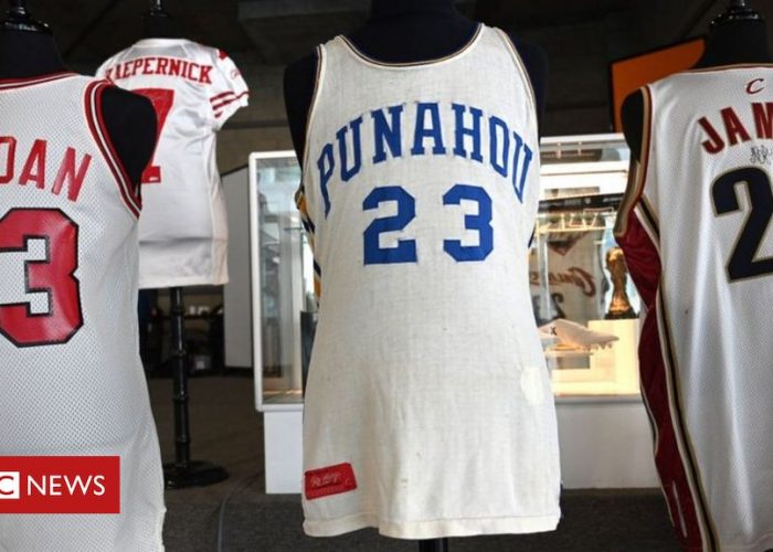 Julien’s Auctions in Beverly Hills said Mr Obama wore his shirt – also number 23 – in 1979, when he helped his team win the Hawaii basketball state championship.